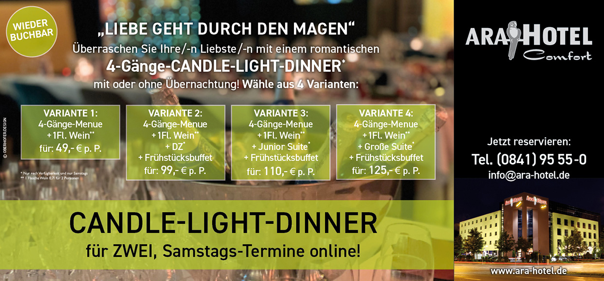 CANDLE-LIGHT-DINNER FÜR ZWEI AM SAMSTAG